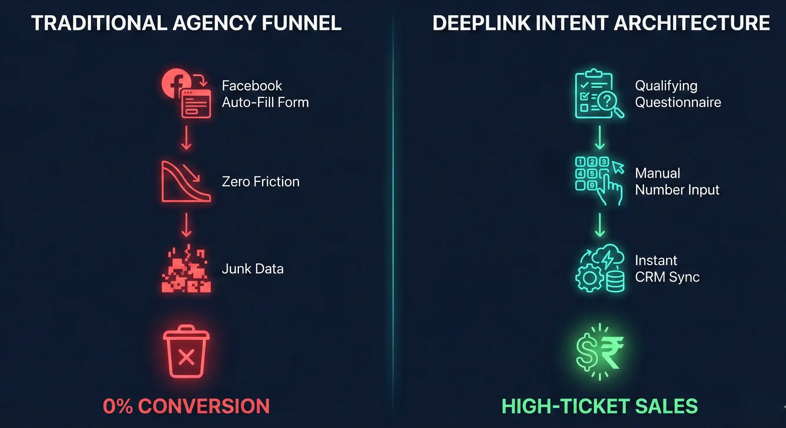 At Deeplink Creators, we fix broken sales funnels. Now understand why you're drowning in junk leads—and how we build systems that bring in actual buyers, not just curious people.